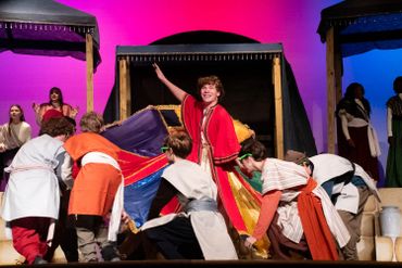 The biblical story of Joseph and his coat of many colors comes alive in the musical retelling. Joseph -- the favorite son of Jacob -- is blessed with vivid dreams that foretell the future. Sold into slavery by his jealous brothers, Joseph endures a series of adventures which challenge him to his core. Soon he finds himself belonging to Potiphar, whose wife makes advances toward Joseph and ultimately land him behind bars. However, news of Joseph’s ability to interpret dreams sparks the interest of the hilariously Elvis-like Pharaoh. Soon, Joseph is out of jail and well on his way to second-in-command. Eventually Joseph’s brothers find themselves unknowingly groveling at the feet of the brother they betrayed. As they fail to even recognize him, Joseph tests their integrity. He ultimately reveals himself and the brothers are reconciled. A truly timeless Old Testament tale, Joseph and the Amazing Technicolor Dreamcoat is set to a multitude of musical genres, spanning from country-western and calypso to bubble-gum pop and rock and roll.